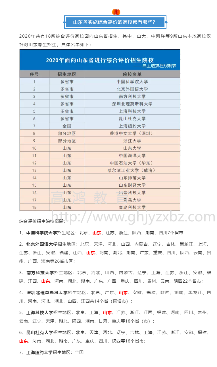 2021年山东省综合评价院校名单有哪些?